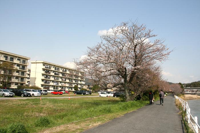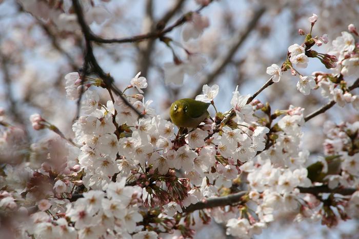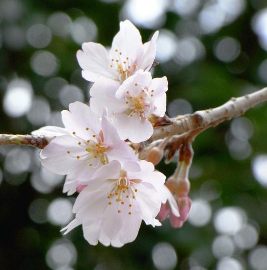 Now cherry blossoms are beginning to bloom.The photo above was taken three days ago, and the whole blossoms are now at thier best.The temperature has been low, so they will last, I hope, until next weekend.
