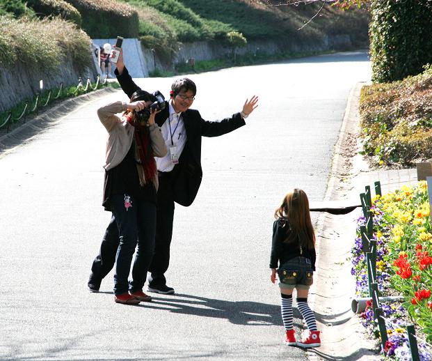 一生懸命かわいい表情を撮ろうと頑張っているカメラマンとその上司らしき人。カメラマンを撮るのが自分の趣味。