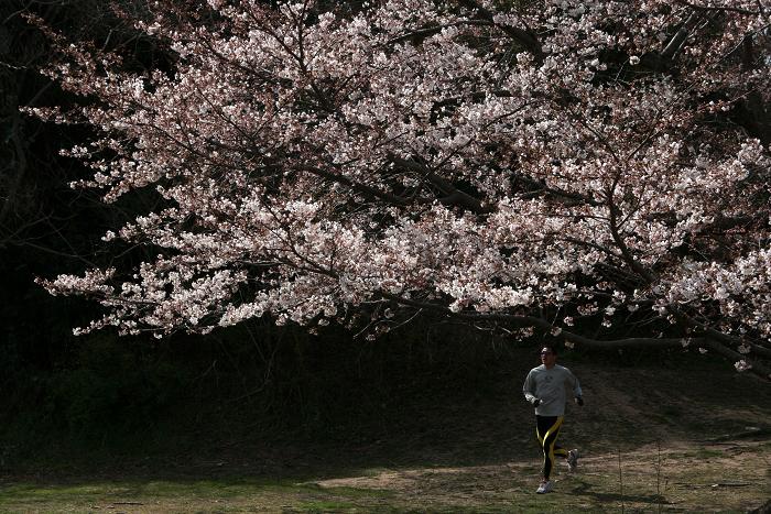 桜の美しさを味わいながら走っている? ーーーーーーーーーーーーーーーーーーーーーーーーーーー今日は雨。桜の花は5分咲き程度なので散ることもないだろう。3月はずっと天気が悪い。気温も低い。春休み中の生徒も手持無沙汰か。希望にあふれて前向きな時期に気温が低く、天気も悪いとなればやる気も薄れるような気がしなくもない。逆に外で遊んでお金を使わないで済む、という点では家庭にとって幸いか・