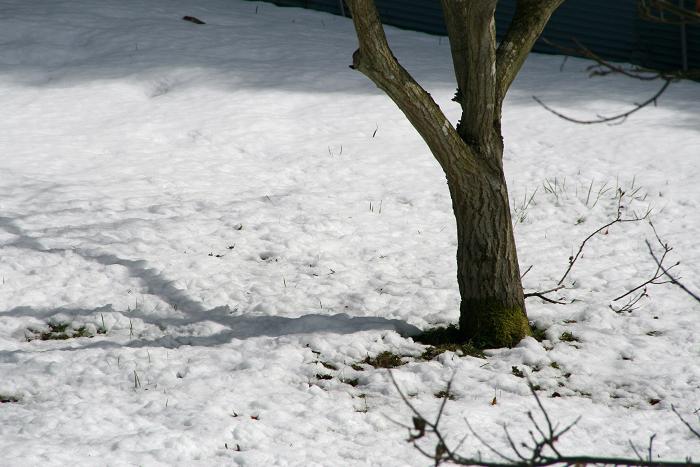2日前に降った雪はかなりのものだったようだ。私に家の周辺にはほとんど雪は残ってないが、娘夫婦が暮らす20分ほど山奥に行ったところでは道端に50cmくらいの雪の山ができていた。田圃はほとんど雪で真っ白。これが今年最後の雪であることを願う。