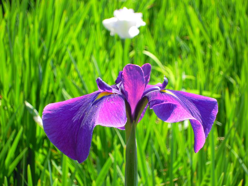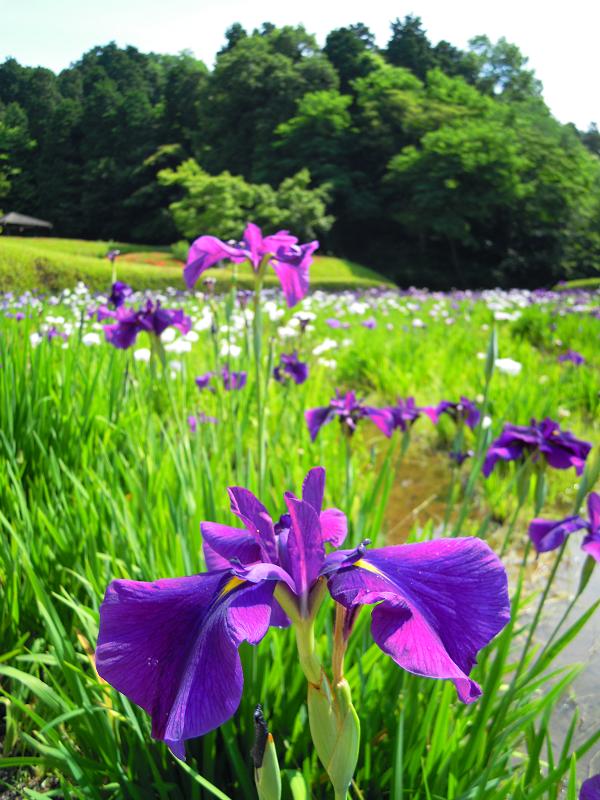 ハナショウブ今日も暑い日が始まった。9時過ぎに散歩がてらに菖蒲園に行ったが、少し歩くと汗が出るほどの暑さ。まだ湿気がないので室内は過ごしやすい。 「菖蒲」「イチハツ」「アヤメ」「カキツバタ」英語ではすべて iris 種類が多いのは菖蒲