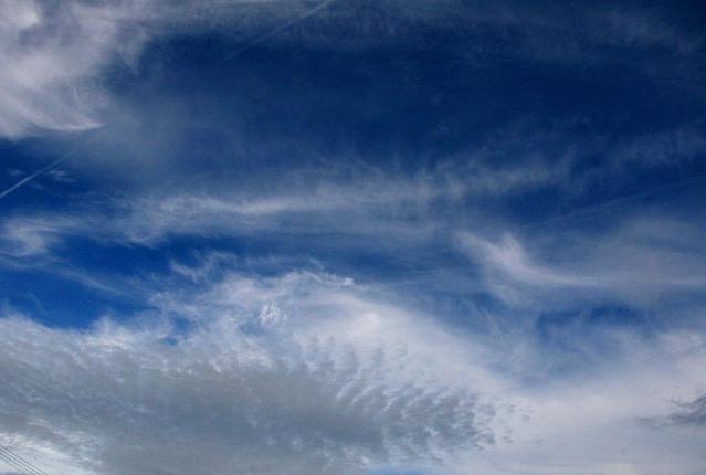 昨日の昼かの空 梅雨の晴れ間に出る雲は様々な形と色をしている。その間に出てくる青空はいい色をしている。