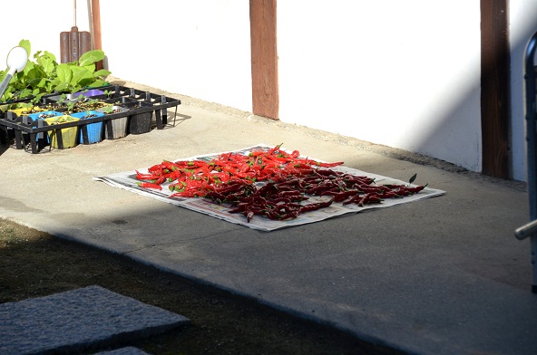 Chili peppers are exposed in the strong autumn sunlight.It is a typical scene we can see in the country.Here comes "red" season.The leaves are turning red and mountaina are covered with red and yellow carpet.