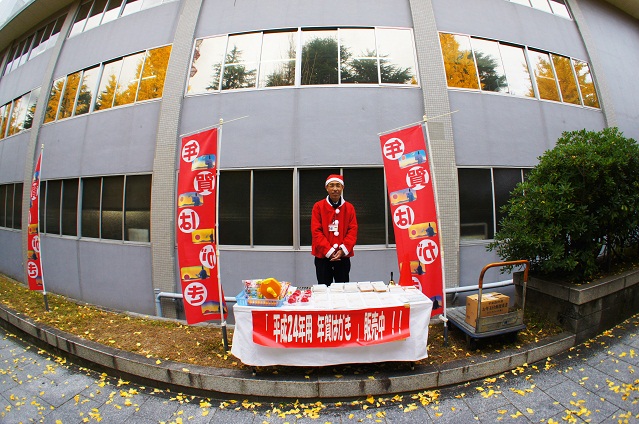 12月が近づくと郵便局前で年賀状の売り出しを連日している。今日は天候が悪く、寒い。それでも局員の人は通行人に「年賀状は要りませんンか」と元気に頑張っている。本当にご苦労さんです。