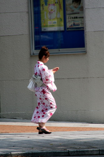 浴衣の季節 山口県も梅雨明けした。いろいろなところで夏祭りをしている。女の子は浴衣で出かけることが多くなった。いい傾向だ。最近は男も浴衣を着るようになった。