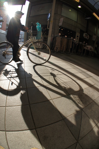 午後の日差しが商店街に影を落とす冬の晴れた日は影が濃い。ただ商店街はお年寄りばかり。買い物の足がバス頼みの人だけが町の商店街にやってくる。さびしいばかりだ。