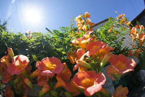 空はスカッと夏!しかし暑さは半端じゃない。政府の景気底入れ策の影響かいたるところで工事が行われている。このクソ暑いときに。クールビズではない厚い作業着を着て道路工事、ビル工事・・・よくやれると感心する。自分なら30分もしないうちに熱中症でダウン。本当にご苦労さんといいたい。