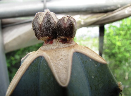 ☆兜の大白点のタイプ、スーパー兜について40年ほど前の昔の話ですが、テキサスからの輸入球に混じって輸入されたらしい、当時1cmぐらいのこの実生兜の接ぎ木苗が10,000円もしたんです。☆スーパー兜 (7稜タイプ) 古い接ぎ降ろし株スーパー兜= ちょっとタイガー系の顔が出ているタイプこれも、接ぎ降ろし株☆スノー系スーパー兜= 大白点が密に付くタイプ------上の3株すべてに結実それぞれを取り蒔きの予定です。☆実生苗を接ぎ木している= そろそろ台から降ろそうかな(台を5cmのこしてカット、1週間陰干しして挿し木する)☆袖が浦に接いだスーパー兜の雑種----------☆スーパー兜は、成長が普通の兜より遅いようなので、実生発芽苗の1年後に一部を接ぎ木で育てています。 にほんブログ村応援お願いします