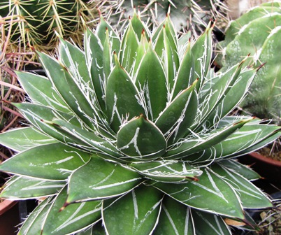 ☆花が咲くと枯れてしまう種類☆アガベ 雷神☆成長点付近の葉にノギが無くなり細くなってきた、花茎が出る兆候が出てきた。いっきに3メートルは花茎が伸び花が下から順に咲いていき、精力を使い果たす。☆アガベ 雷神型優美種普通はこの株のように、成長付近の葉にもノギがあるのが普通なんですが。☆アガベ 姫乱れ雪現在花茎が伸びて開花中、子供をのこして親は枯れてしまう。アガベは100年花といいますがこの種類はよく開花する。☆センペル キシデゲリーA花茎が伸びて咲きかけている。花茎を途中で切っても枯れ死は免れないのでこの株の場合は、みとどけてやるのみです。☆センペル 百恵成長天が伸びてきた、開花の兆候がでてきた。------------------☆アエオニュウム属(黒法師等)も花茎が伸びて枯れるタイプですが、枝からの子吹きがあれば株全体が枯れることはない。・・・・・・・・・・・・・・・・・・・・・・・・・・応援お願いしますにほんブログ村ブログランキング★ガーデニング
