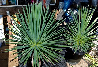 一段と暖かくなった23日、6坪雑居ハウスのビニール(農ポリですけど)素通し部分に50%の寒冷紗を覆いました。本日は陽気とは関係なくアガベ・吹上等。散髪前と整葉後アガベ・姫吹上(左)と吹上.‘ナナ’(右)鉢からはみ出た葉っぱを切り取った。もっと短く上まで切ってもよいのだが・・・・隣の苗の邪魔にならないようにと、だらしなさ解消してスッキリ キリット成った。アガベ・吹上 ナナ(Agave stricta 'Nana')吹上の仔吹き変種で葉色が多少黄色っぽい。大きさは姫吹上と同程度の大きさに成るが、仔吹いた仔は外さないと大きく成らない。アガベ・マクロアカンサ(Agave macroacantha)葉先の鋭い大きな黒刺が格好良い。この苗も隣の多肉を突き刺すので横に広がった葉を切り取った。アガベ・姫笹の雪単独苗仕様株。小さい時期は仔吹きだらけになるが、植替えの度に仔苗外しを繰り返すと、やがて仔吹きしなく成りコンパクトに仕上がる。吹上‘ナナ’と同じ原理です。下葉は切らずに枯れ葉のみ切り取る。アガベ・メリコ錦(Agave 'Merico Nishiki')大きな鉢に植替えた。多少鉢からはみ出るが・・・下に反り返った葉先のみ切り取っている。この大きさに成ると殆ど仔吹きしない。アガベ・王妃雷神白中斑(A. potatorum"Ouhi raijin"mediopicta)4号蘭鉢に植えたこの株はこの程度で収まる。茎の途中から仔吹きしてくる変わった奴。毎年外しているが、今年も5~6個外せそう。