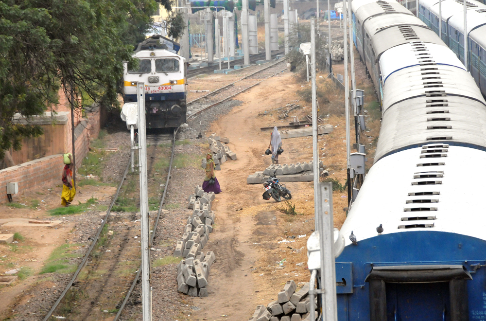 線路脇を往来替わりに行き来する人の安全はもちろん自己責任なのだろう!
