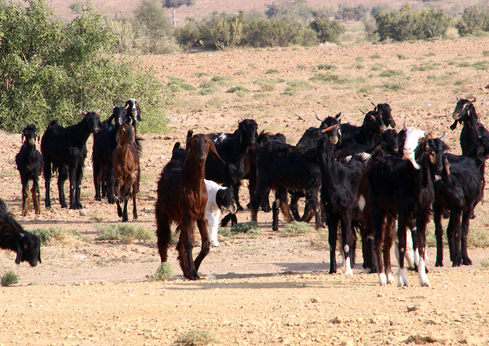 道路の周辺には大きなサボテンやラクダや山羊の餌になるジャグリの木が生えている。