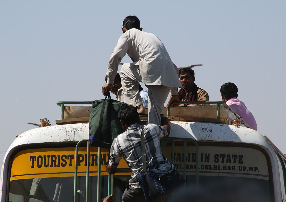 たびたびバスの屋根に乗りこむ場面にも出会ったが