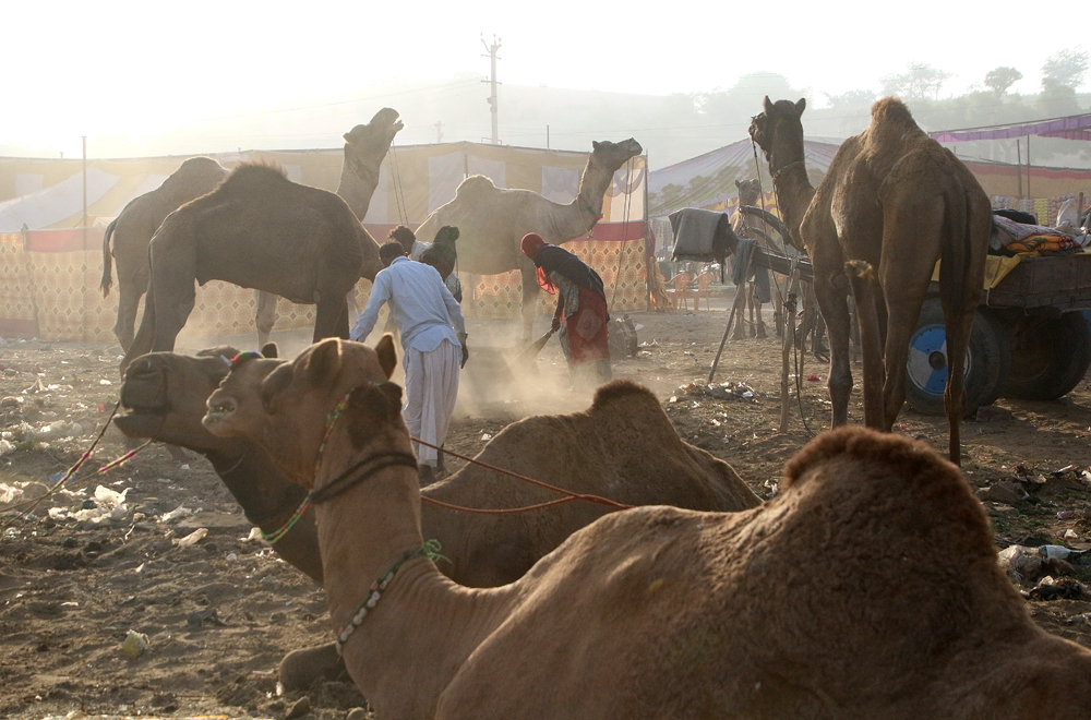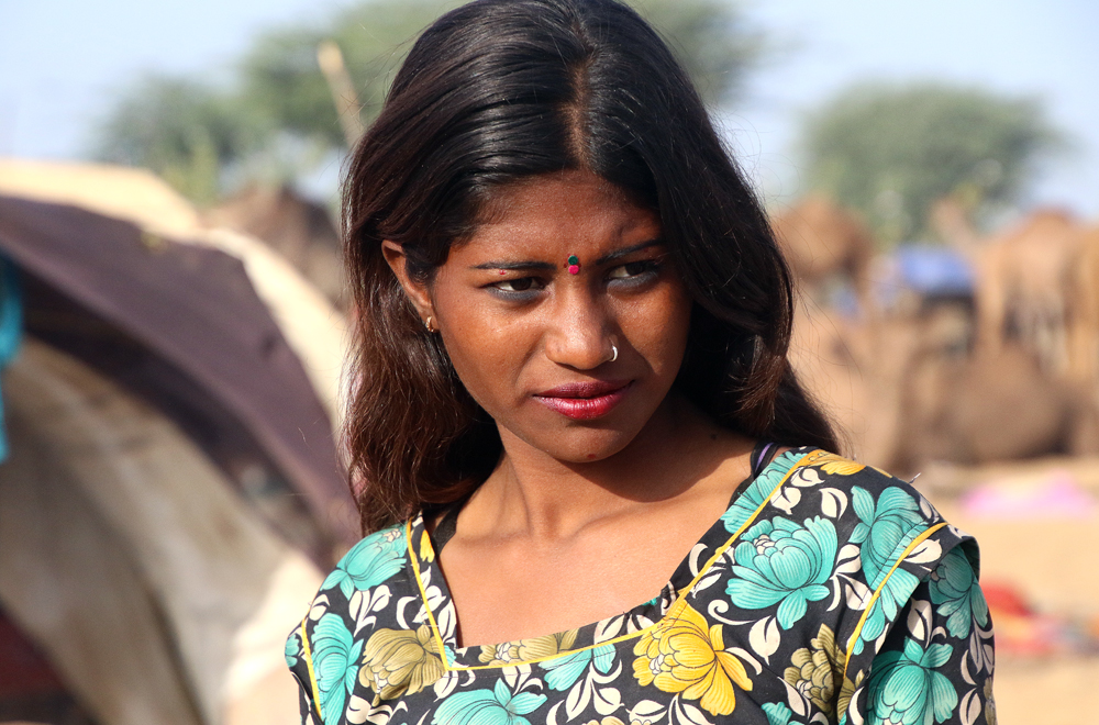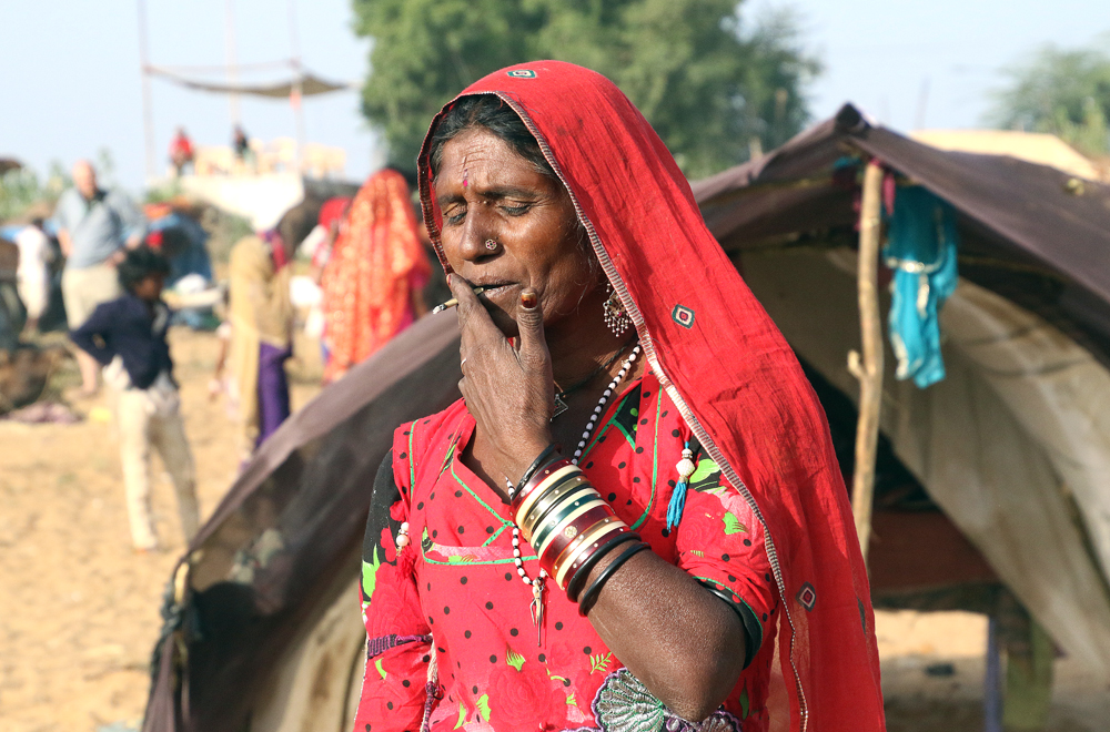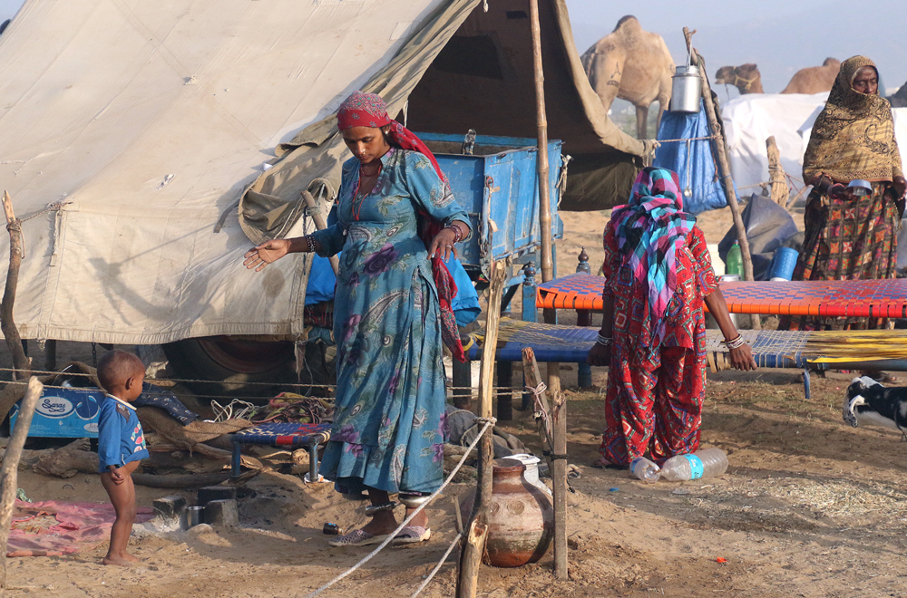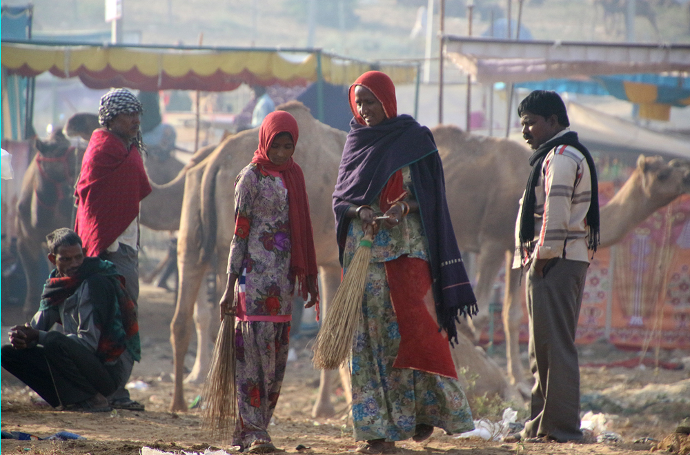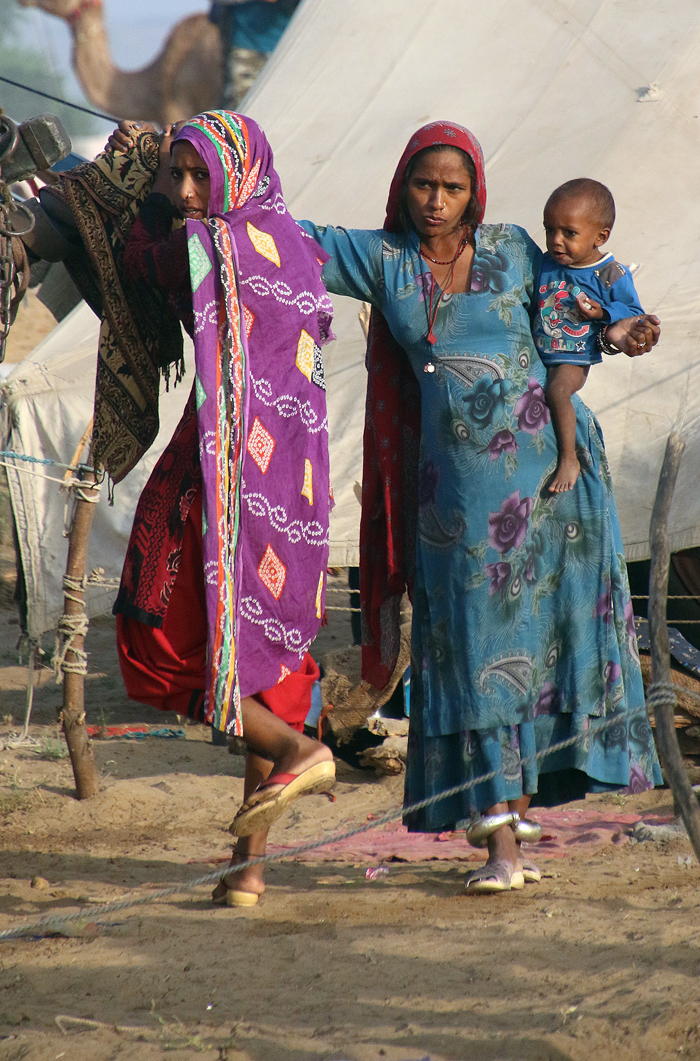 以前訪問した「カッチ」や「ジャイサルメ-ル」砂漠の祭典では働く女性ばかりが目立ち