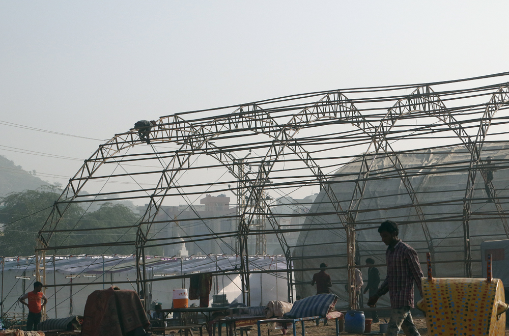 「らくだ市」が開催されてもまだ、突貫工事で建設進行中のイベント会場もある。