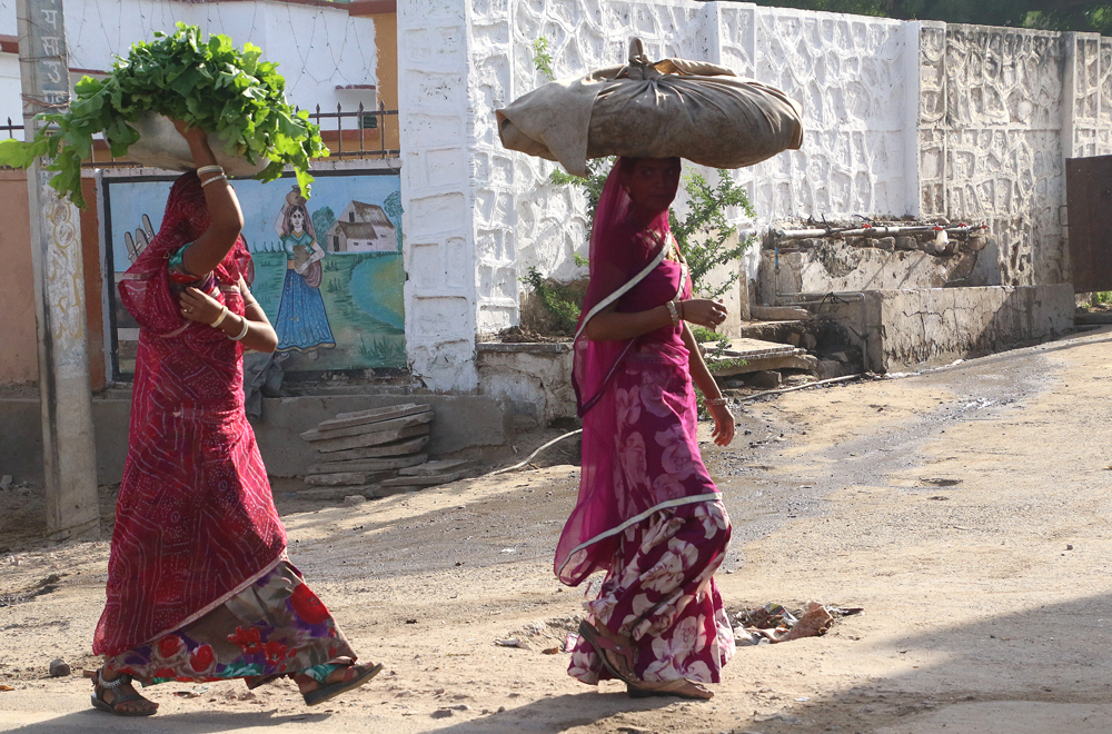 おなじみ、頭に荷物を載せたサリ-姿の女性たち。