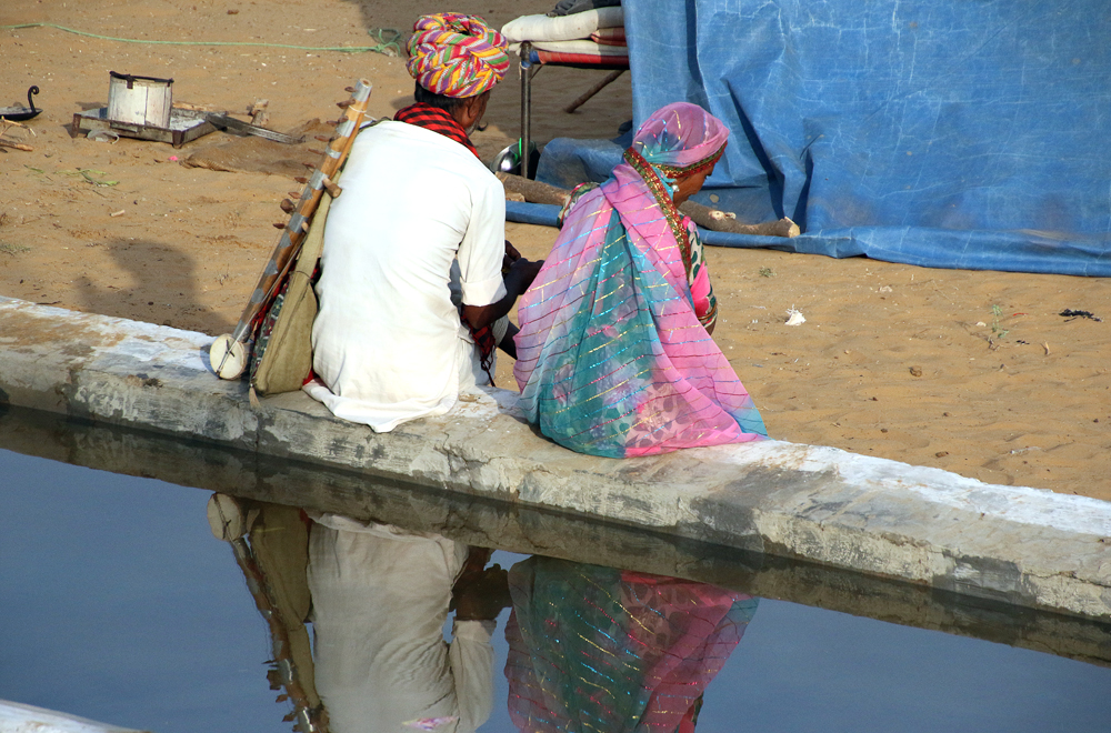夫婦だろうか、疲れ果てて水飲み場で今日の反省?をしている。