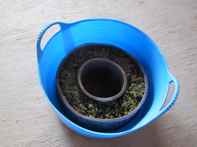 先日スナゴケを購入しました。画像ではちょっとわかりにくいですが、モールみたいな苔なんですよ。ドーナツ型の植木鉢に植え付けてみました。うまく活着するともこもこと盛り上がり、鉢の縁からあふれるように茂ってくるそうです。活着までは水分を切らさない方が良いとのことなので、腰水をしておきました。↓珍しいドーナツ型の植木鉢。信楽焼です。信楽焼植木鉢 平造窯 黒釉網目文変形丸鉢 10号(1712-17) 30cm 【山野草鉢】【多肉植物鉢】【寄せ植え鉢】価格:5265円(税込、送料無料) (2017/2/19時点)
