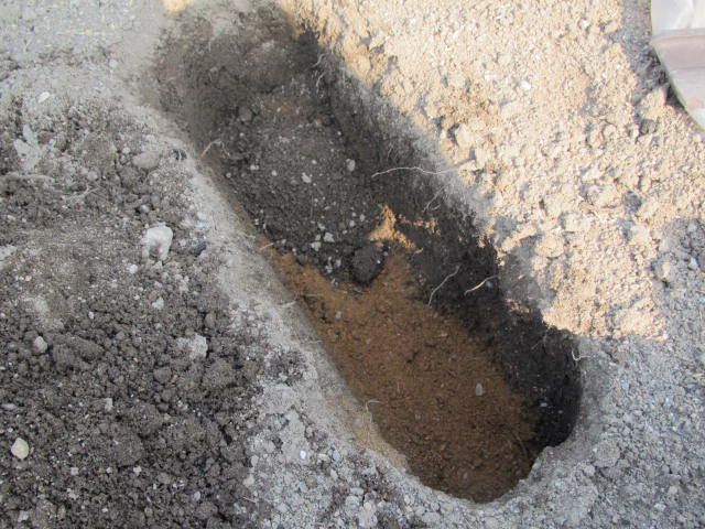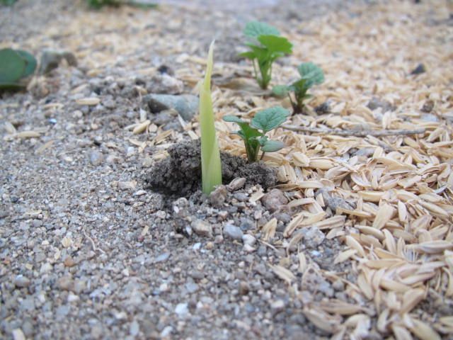 毎年育ててきたショウガですが、去年は悲惨な結果に終わりました。2週間以上雨が降らず葉っぱが枯れ果て、復活したと思ったものの収穫できたのはごくわずか。でも今年は立派なショウガを作りますよ。というわけで、今年は「溝施肥」に挑戦。幅15cm、深さ20cmの溝を掘り、ぼかし肥を敷き詰めます。深さ5cmほど土を戻して、種ショウガを15cm間隔で3つ並べます。すべての土を戻して表面をならし、乾燥予防ために籾殻で覆っておきました。1ヶ月後に追肥をする予定です。その頃には発芽しているはず。