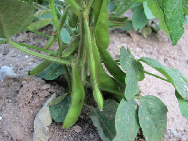 枝豆の莢がたくさん着きました。数日前にはぺちゃんこだった莢が、もう膨らみ始めていますよ。豊作の予感。今はせっせと水やりに励んでいます。