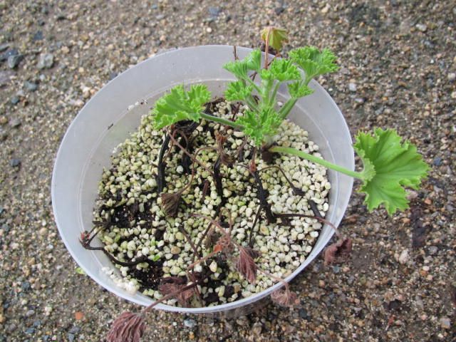 先日紹介した、ゼラニウムの挿し芽です。その当時から怪しかったのですが、次々と枯れ果て…。どうにか一本は生き残ったようです。植木鉢の底を確認しましたが、根っこはまだ見えません。まだ気は抜けませんね。↓挿し芽・挿し木に最適な半透明のプラ鉢です。半透明 プラ鉢 13.5cm 10個 【あす楽対応_関東】価格:378円(税込、送料別) (2017/9/13時点)