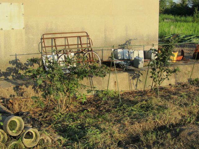 枝が茂り過ぎて手に負えなくなっていたブラックベリーです。一応、実はなっていましたが、事実上放置…。草も生い茂って、まるで小山のような状態だったので、さすがに今日は重い腰をあげました。午前中は草引き。垂れ下がっていた枝も剪除したので、株元がすっきりしました。午後は元々立てていた支柱をのけて、新しい支柱を立てました。今後の手入れのしやすさを考えて、高さは私の目の高さくらいにしました。枝の誘引はいずれするつもりです。