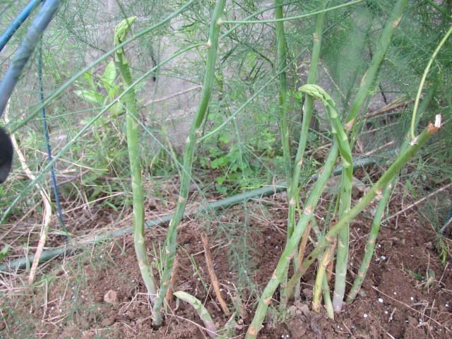 今年初めて収穫できたアスパラガスです。9月現在、収穫に関してはシーズンオフですが、根っこを育てるために葉っぱを茂らせています。一見、収穫できそうなものもありますね。化成肥料を少し施しておきました。せっかく育った茎を支えるために、曲がる支柱を3本使ってみました。紐も使うとより安全なんですが…。台風がひどくありませんように。↓種子からも育てられるんですって。【アスパラガス種子】ウェルカム (サカタのタネ) 小袋 野菜の種 【サカタのタネ】価格:432円(税込、送料別) (2017/9/15時点)