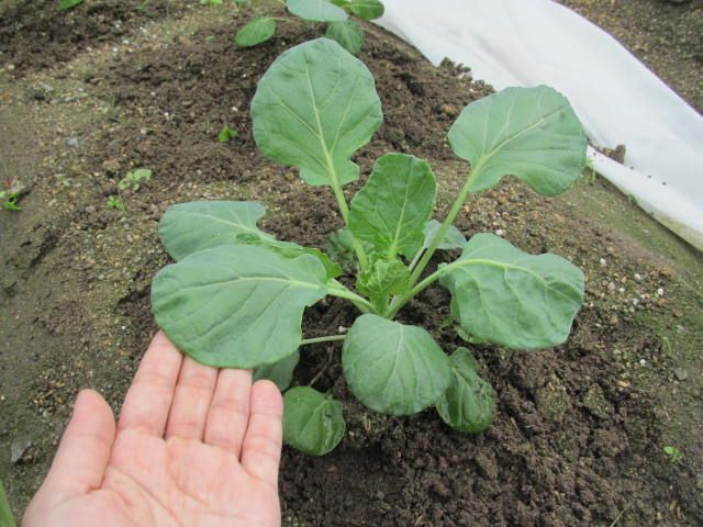 発芽から1ヶ月以上が経ちました。苗は小振りですが、このままポットで育ててもそれほど大きくならないはずです。思い切って植え付けてみました。赤い粒々は、ヨトウガの幼虫などに食い切られるのを予防するための薬剤です。無農薬栽培が理想ですが、虫にやられては元も子もありませんからね。最後に不織布で畝全体を覆って、チョウを予防します。↓うちではこちらを使っています。エムシー緑化ネキリエースK600g価格:820円(税込、送料別) (2017/9/2時点)