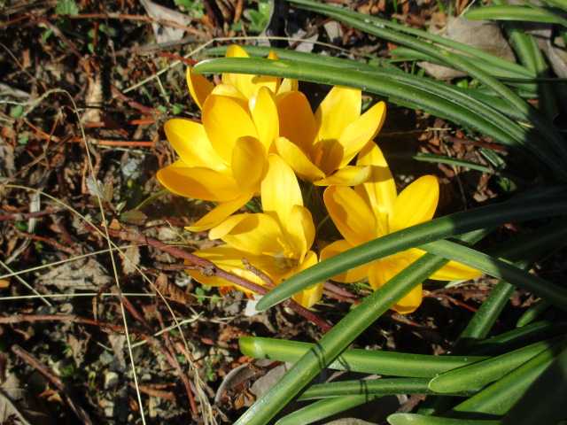 いくつか種類があるうちの黄色いクロッカスが咲いています。毎年、黄色が一番早く咲きます。色が乏しい庭が一気に春らしくなってきました。