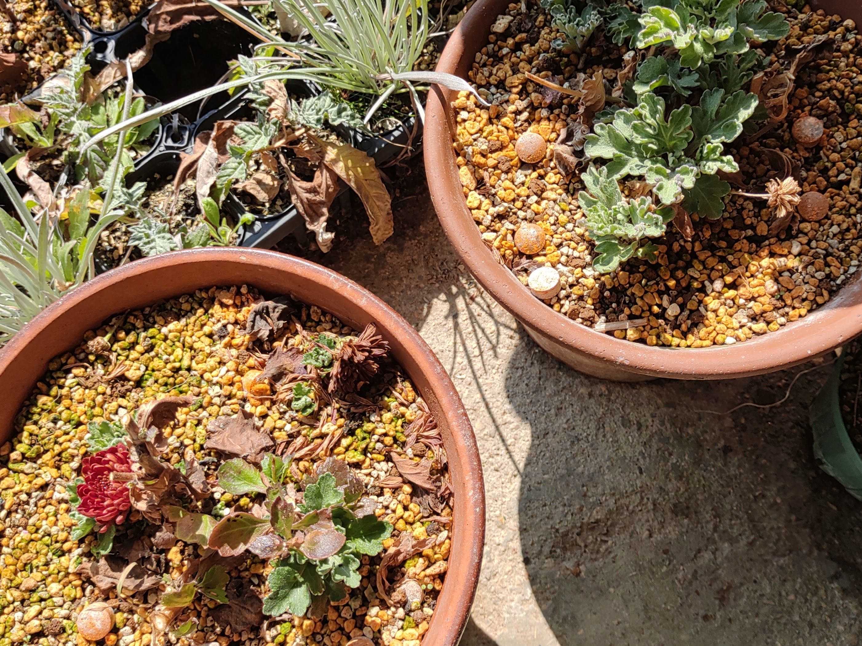 去年買い求めたポンポンマムに新芽が出てきました。菊はとても丈夫です。年末に切り詰めた茎から脇芽が出てくるのかと思っていましたが、そうではありませんでした。地中からどんどん芽吹くんですね。