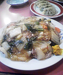 某中華料理店の五目焼きそば。月に3回は食べたくなるので早速昨夜食べに行く。これ、中華料理屋の焼きそばなので所謂焼きそばとはちょっと違くてあんかけとからしというコンビネーション。これがまた絶妙~!とか言ってたらまた食べたくなってしまった…。焼きそばと一緒に餃子を…あ、餃子といえばなんだか日本の冷凍食品は大変なことになってますが中国紙の環球時報じゃ『日本騒ぎ過ぎ』とか言ってるようで…