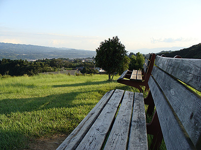女心と秋の空とはよく聞きますが、実はこれって最近の新語で元来日本では『男心と秋の空』なんだとか…。(イギリスの諺『女心と冬の風』の影響らしい)変わりやすいのは男心であったとは…なんだかピンとこないなぁ。話は変わって、某若手仲良しカップルに誘われM公園へやってきた。ん~。この空、風、空気…。秋ですなぁ。ちょっとした高台にあるこの公園からは川向こうの街並みを一望できて得も言われぬ気持ちよさ。秋って寂しいイメージがあるけど秋のドライブと公園は乙なもんです。