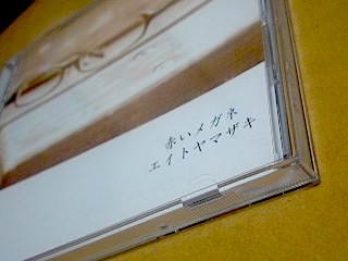 奇しくもあたいの誕生日に発売したCD、「赤いメガネ」。長野の女性シンガー、エイトヤマザキのCDです。先日、飯田でレコ初ワンマンやるってんでそりゃ行かにゃ!と行ってきました。なんだかんだでかれこれ5、6年の付き合いになりますかねぇ。彼女から溢れてくる等身大でストレートな歌詞は時に『女の子ってこんなこと思うのか~』って思わせてくれて、自分にゃこんな詩は絶対書けないな、とも思うわけで(笑)『雨』なんか、ホントそう!嘘の無い、愛ある曲がいっぱいでした。色々あったんだねぇと思ったり色々あったよなぁ!?と思ったり聞いてるうちに涙でてきたりやっぱり『シアワセカ』は思っていた通りの曲でそんな意味で笑顔になったり。今度、お気に入りの『あの』曲をカバーしてもいいか、問い合わせてみよ~♪