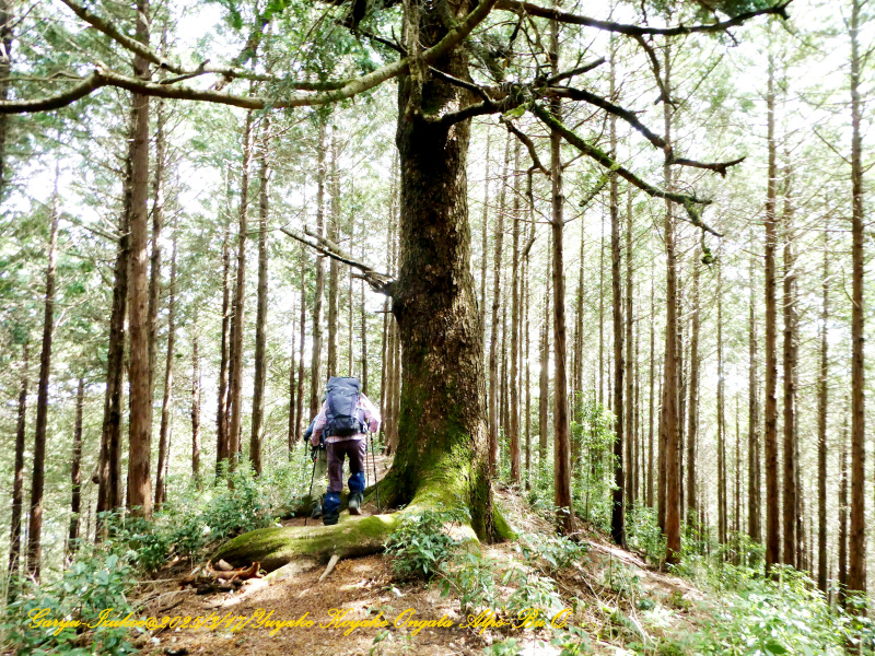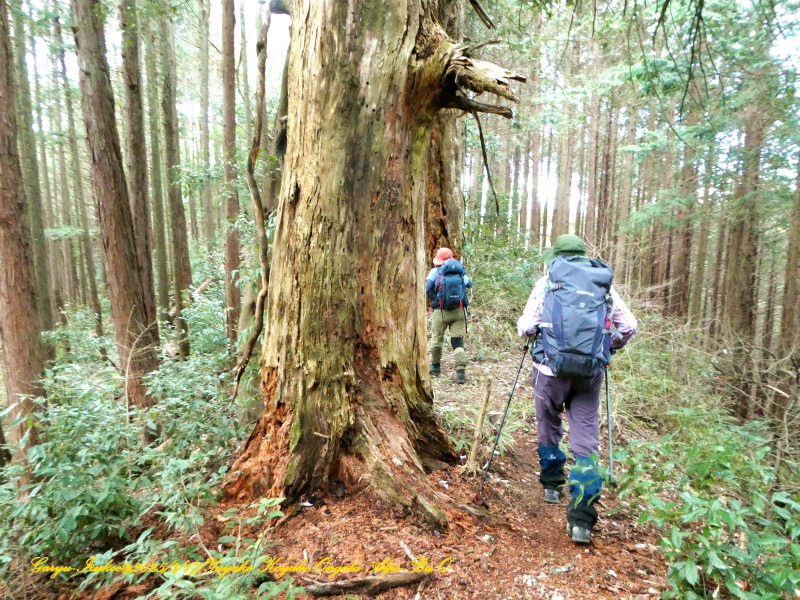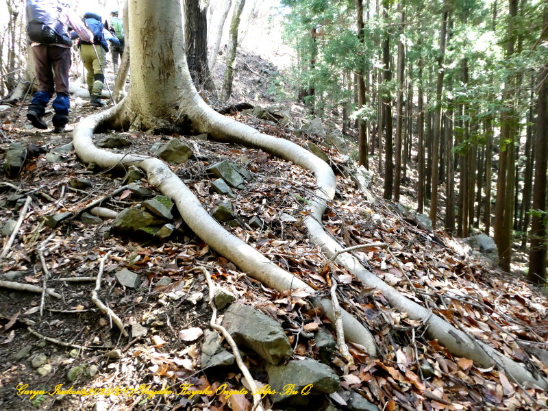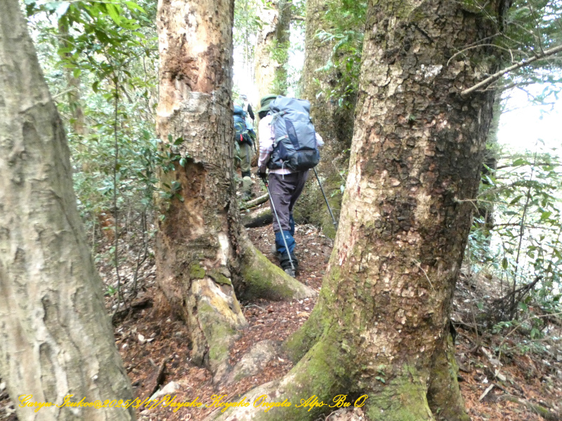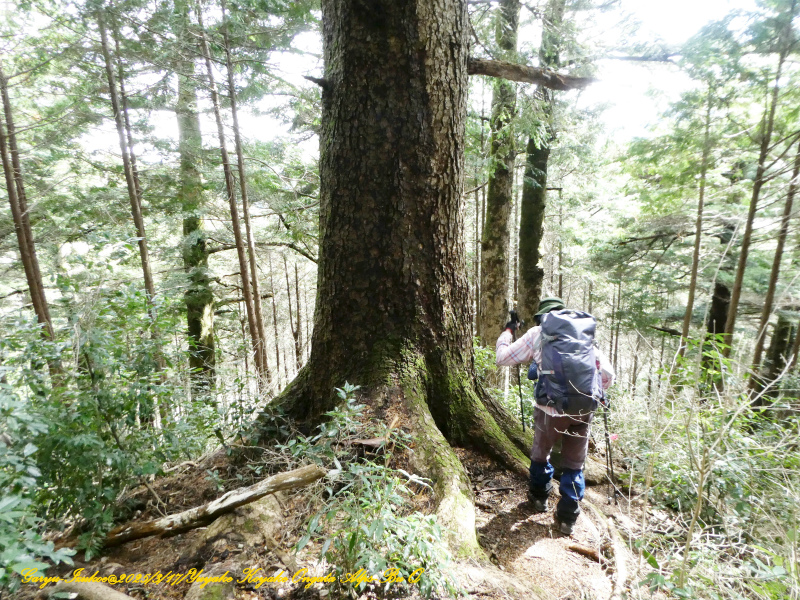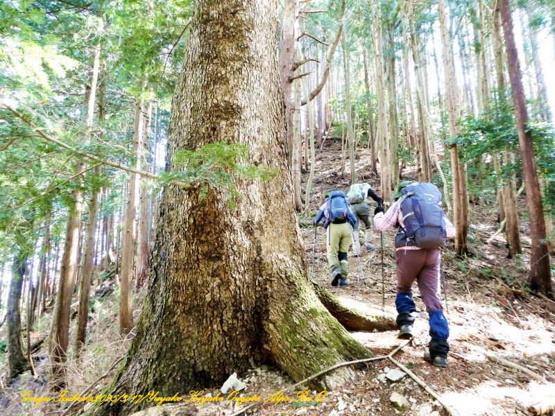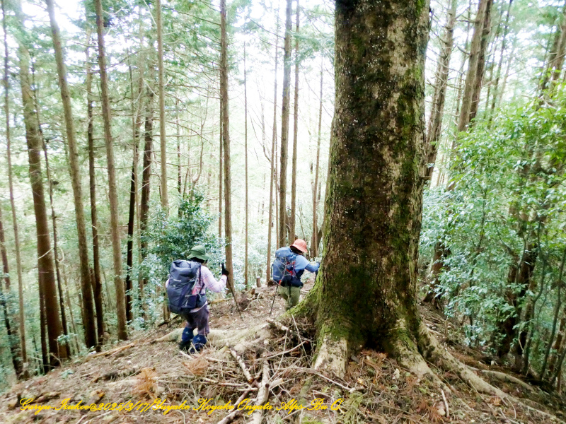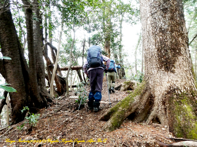 尾根道筋、左右には大樹が沢山ありました