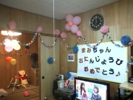 3月29日 今日は、真美 ちゃんの1歳の誕生日 今日は、準備のため仕事休みました 自分ん家で誕生日パーティー 飾り付けやって アルバム作って ケーキ買ってきて 片付け、大掃除 机のセッティング 飲み物、食べ物準備して お寿司をとって 料理して タンカーユーエーの道具そろえて 内祝い返し品かって バタバタでしたね。 主役は、風邪ひいてて鼻水だらだら、顔が鼻水だらけで ほっぺもカサカサのまっ赤っか そんなこんなで 無事に一年何事もなく成長できたのでうれしいですね。 感謝です。 お誕生日おめでと~~~う!(^^)!