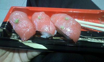 初めて食べました大トロ!!のにぎり 大阪出張で帰りに 黒門によって おいしそうだったので食べました 4貫で1,000円 トロッ トロっ でした!(^^)! 贅沢じゃ~