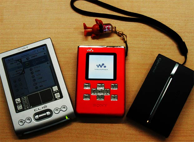 ところが、ふと気付いた。ここ1年でボクが手に入れたデジモノを並べてみた。古い順に、ソニーのPDAクリエ、ネットワークウォークマン、デジカメの3つだ。