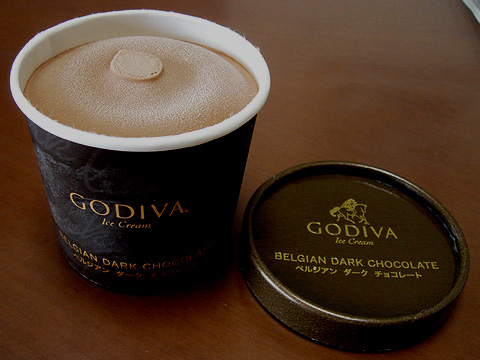 GODIVAといえば、高級チョコレート。10粒で何千円もするようなの。そのゴディバがアイスクリームを作っているんだって。初めて知った。で、食べてみた。もらい物だけどね。アイスクリームということです。ラクトアイスではなく。脂肪分の割合が多いんだよね。まさに、アイスドクリーム、凍らせたクリーム。凍ってないけど。トローリとろり。チョコ風味の軽いアブラを直接口に運ぶような感触。ちょっとやりすぎかな、そう感じました。自分では買わないだろうね。グリコの150円チョコアイス(ラクトアイス)の方が、素直に好きでした。ま、ご機会があればどうぞ!というところでした。