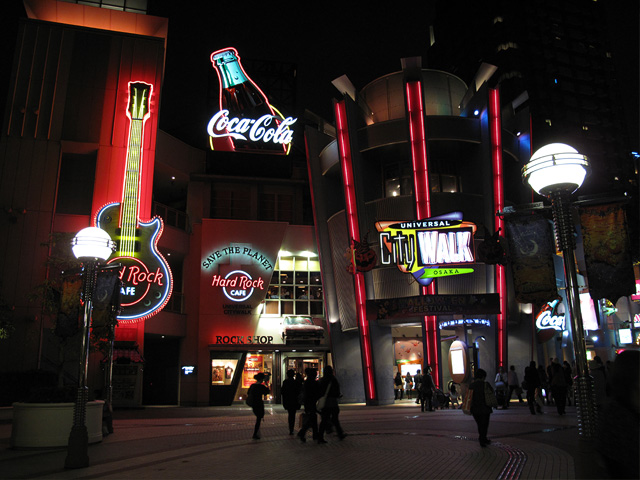 先日、買ったばかりのG10で、わずかばかり撮ってきた。 子どもをUSJに連れて行ったんだ。 年間パスが11500円なので、割とみんな持っている。 2階行けば元とれる勘定だからね。 昼間はあいにくの小雨だったから、カメラの出番が僅少。 夜になり、アメリカンな華やかさを誇るUSJ周辺で、何枚か。 露出補正ダイヤルが独立しているのは、ホント、大助かりだね。 ユニバーサルシティウォーク。 ISO200 F2.8 1/20 露出補正-1と1/3 手持ち撮影。ノイズ感が極めて少ない。 桜島線。大阪行きホームは混雑。 ISO80 F2.8 1/6 露出補正-1/3 手持ち撮影。ぶれてない。DIGIC4の威力か。オブジェ。シャープにとれている。 ISO80 F4 1/5 クルマのサッシにG10ボディの一部を押さえつけて。