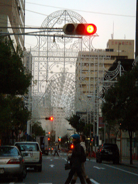 11月にはいると、街は急にクリスマス色に。神戸LOFT脇で。娘の半頭が妖しいか。