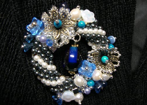 ポイントはターコイズのビーズをお花の真ん中にもってきたことと、