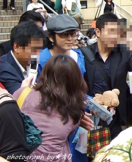歌を熱唱の後に、ジュンギの椅子にちょっとしたハプニングがあって途中で高さを調節。「歌を歌うとファンの前でも震えて足がフラフラする」とハニカム姿もとっても可愛かったジュンギが「スペシャルフィルムつまらなかったでしょう?皆さん眠たくなかったですか?」と、しきりに心配していました。上映最中も舞台裏で背中に嫌な汗が流れたそうです 司会の女性の「イルジメが終わってから何をしていましたか?」の質問に「家でそのまま休んだ」会場からの「スル!(酒)」の声に笑い。お酒を飲みに行くのは主にアックジョンドンだそうです。そこは芸能人がたくさん来るところなので気分的に楽なのと、他にあまり知らないという理由。そして「人々が自分を見つけてイ・ジュンギだ、イ・ジュンギだと云うのが面白い」とやんちゃな笑顔~今はソウルで一人暮らし、出不精なので家でご飯を作って食べることも多いとか。何を作るのかと問われると「平凡なんですが(すごく強調)、テンジャンチゲ、キムチチゲ、プルコギ等、4~5品」そして「綺麗好きなので他の人にキッチンを汚されるのが嫌なんです」と云って、ちょっと皆からブーイングそう云えばジュンギは「天下一品」が好きだと云っていた。あのこってり感が良いんですって酒癖について問われると 「HUG」と答えて、「でも女性は抱きません」会場から「エエ~~」の声に「一緒に一度酒を飲んでみなければならないですね」と笑うジュンギ。 「それでは男性だけを抱く?」の問いに会場は大きなどよめきに包まれ、ジュンギは苦笑しながら「フレンドシップ」と答えました時より流暢な日本語を混ぜながら、とても楽しいトークでした質問者にプレゼントを渡すシーンでは微笑ましい場面も。会場から大きな拍手がありました。実際に近くで見るジュンギは眼力が強く(でも優しい目)、彫刻のように美しい男性でした。前にも書きましたが彼の手は大きくて、温かくて、力強くて、良い香りがしました。とっても素敵な時間を有難うジュンギ やっぱ、せっかく取り寄せたんだから着ていけば良かったかなぁ