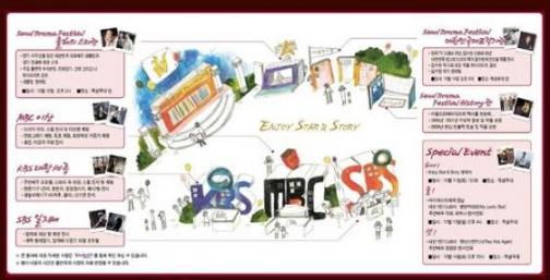 ソウルドラマフェスティバル2008が来る11日から14日までソウル汝矣島公園で「スターとともに楽しむドラマの全てのもの」という主題で舞台行事である「Enjoy Star & Story」を開催する。 今年で3回目をむかえるソウルドラマフェスティバルは既存のドラマ授賞制度から抜け出して、ドラマ スターと市民たちが一緒に楽しむことができるフェスティバル形態に開かれる。今回の行事には、放送3社ドラマ『大王世宗』(KBS)、『離散』(MBC)、『イルジメ』(SBS)のセット場がそのまま再現されて、大韓民国代表作家キム・スヒョンが予備作家らに自身の作家観、作品世界、人生観などを言う場が用意される計画だ。国民俳優チェ・ブラムはファンミーティングに参加して市民たちと疎通する。 また自身のプロフィールおよび写真、個人所蔵品などを展示して、『捜査班長』をはじめとする代表出演作品ハイライトを鑑賞できる場を作って、中年たちの郷愁を刺激するものと見られる。ソウルドラマフェスティバルは14日午後6時KBSホールで「ソウルドラマオウォーズ2008」を行う。 世界33ヶ国152作品が競合を行って、この席にはユ・インチョン文化体育観光部長官、オム・キヨン韓国放送協会長、イ・ジュンギ、ナム・サンミ、東方新起 、ハン・コウン 、イ・ハンウィ、キム・ドンワン 、イ・ヨンア等が参加する。 どうやら当日、KBSでは生中継もあるようですよ