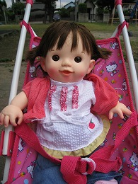 昨日お友達の家に遊びに行った時に、少し大きいお姉ちゃんがうさちゃんのぬいぐるみを持って来ていました。それもオンブしたりお世話ができる人形で、それを借りていた娘はお世話ごっごがとっても気にいった様子。娘もいつもお気に入りのネコのぬいぐるみを大事に持ち歩いてはいましたが、こんなにお世話をしたがる年頃だとは思っていなかったので、お人形といったものは特に与えていませんでした。すると、周りからも「じゃあ、いつも何して遊んでいるの?知育玩具?」なんて聞かれ、ちょっとハッとしたのですが、確かに最近は実家でおもちゃも少ない為に、お天気の日にはお外でプール、室内ならば、お絵描きやはさみでチョキチョキ、あとはブロック遊びくらいでした。う~ん… 知育玩具かぁ…と考えさせられてしまったのが正直なところです。。 渡欧前ですしあまり荷物を増やしたくないというのもありましたが、何だか可愛そうにも思えてしまい、実は昨日の夜ぽぽちゃん人形を購入してきました。すると、それはそれは大事にして、まるで小さなお母さんになったみたいに朝から晩まで一緒に居てお世話をしています。本当にびっくりです。『幼い母性』なんでしょうか昨夜なんて、寝かしつけの時に私が娘をトントントンとしていると、隣にいるぽぽちゃんを娘もトントントン…としながら寝かしつけ、そのまま眠ってしまいました。 今日は朝からぽぽちゃんを連れて娘と公園でお散歩。ご機嫌の一日でした。 thank you!!