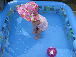 昨日に続き、今日もいいお天気でした~ 朝からプールに水を張ってパラソルを立てて準備はばっちり。娘は水を入れている間から待ちきれなくて、プールプールと大興奮でした。最近、お着替えが嫌いな娘ですが、「プールに入るならお着替えね^^」なんて言えば、あっという間に着替えてくれます。それにしても暑かった~ 私の住むこの場所は山々に囲まれた盆地のような地形の為、本当に暑い!!暑さが溜まっているって気がしますね。日差しはジリジリ、汗はダラダラ。。まさに日本の夏って感じですね。涼しいカナダが羨ましいです。 thank you!!