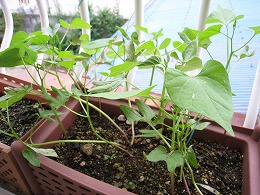 実家に来てすぐにバァバと一緒に娘がアサガオの種を蒔きました。ベランダに置いてあるプランターに毎日お水をあげに行くのが最近の日課です。通常より遅く蒔いた朝顔の種、頑張ってスクスク成長してくれています。バァバは娘に、「こっちにいる間に花が咲くかな?」と話していました。渡欧するまであと数日、一つでもいいから咲いてくれたらいいなぁ。 thank you!!