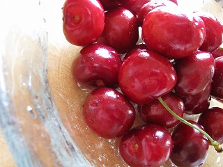最近娘がはまっているもの、それはアメリカンチェリー。ちょうど今チェリーの季節なんですね。スーパーへ行くと必ず店頭の目立つところに置いてあり、真っ赤で美味しそうなチェリーは私もついつい買ってしまいます。数日前、娘に「食べる?」と聞いた時、「うん!」と大きくうなずいて目を真ん丸くしていたので、お皿に載せてあげると茎の部分を持って嬉しそうにしていました。そして最初に私が一つ食べて、種があるんだよと説明し見せてあげると、自分で一つ口の中に放り込みモゴモゴしながら種だけを上手に出して食べていました。2才にもなると物事をきちんと理解し、手先だけではなく色々な事が器用にできるようになるんだなぁって感心してしまいました。その後は、もうアメリカンチェリーの虜。スーパーに行き、娘の目に留まると指をさして「あった~!」を連発。確かに美味しいけど、食べすぎには注意しないと、チェリーはお腹が痛くなっちゃうんですよね。。。 thank you!!