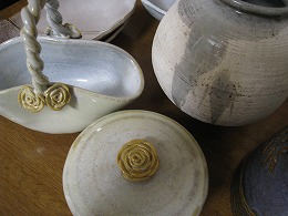 以前の日記でも少し書いたことがあったけど、私の伯母は個展を開くほどの腕前の陶芸家?です。今日はそんな伯母の家に娘を連れて家族でお邪魔してきました。妹である私の母もお裁縫などがとても上手で、以前、伯母の個展で一緒に作品を販売したこともありました。私たちがオーストリアへ引越しをすることを知った伯母は、私にと幾つかプレゼントを用意してくれていました。バラのお花の付いた蓋つきの入れ物はとってもかわいく、同じバラシリーズでは奥の籠みたいな入れ物も頂いてしまいました。 棚にたくさん並んだ器やお皿からも、「好きなものを選んでちょうだい」なんて言ってくれ、遠慮なくその他にも沢山頂いてきてしまいました。手に持ったときにずっしりと暖かみのある和食器って私も大好きなので、本当に嬉しいです。大切に長く使わせてもらおうと思っています。 thank you!!