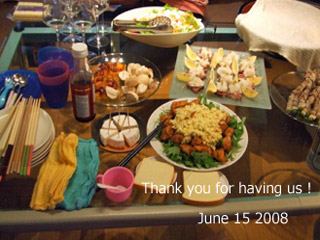 今日はフラのメンバーが送別会を開いてくれました。みんな子供がいるので、マンションの集会所を借り切ってケータリングサービスをお願いしてくれ、本当にすばらしいパーティーでした。子連れで始めたフラダンス、立ち上げから参加し約1年、ハイハイをしていた赤ちゃん達が走り回る幼児になって、途中から加わってくれたお友達とも仲良くなって、たった1年だけど、本当に沢山の思い出ができました。こうやって皆と出会えたのも子供が居たからこそ、同じ時に同じ場所で子育てをし、まさに「一期一会」。私達のレッスンを快く受けてくださった素敵な先生との出会い、神様に感謝することがいっぱいです。皆から頂いた、寄せ書きとアルバム大切にしますね。今日は本当にありがとう!! thank you!!