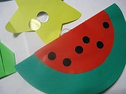 今日は保育園へ遊びに行ってきました。昨日と同じ未就園児を対象とした集まりですが、やっぱりうちの娘はまだ2才児、こちらの方が年齢的にぴったりだったようです。昨日の幼稚園と同じでテーマは七夕飾り作りでしたが、切ったり色をぬったりという作業はなく、先生が前もって作っておいた飾りにシールを貼ったり、お顔を書いたりというものでした。今日の参加者だけでも25組くらい居たと思いますが、人数分以上のセットを事前に作ってくれているのには本当に驚くよりも感動しました。たった100円の参加費で、おやつから七夕セット、おうち用の折り紙まで。園の特徴を大事にしている私立ならではかなとも思いました。この夏はこちらの保育園と幼稚園にたっぷりお世話になるつもりです^^ thank you!!